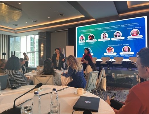 また、国連が主催する、様々なイベントにも参加ました。例えば、Istanbul Development Dialogueの”Investing for Gender Equality and Inclusive Climate Action”では、政策立案者や学者との対話を通じて、気候変動とジェンダー平等に関する多様な意見を聞きました。特に「女性、気候、平和」に関するディスカッションセッションでは、小グループに分かれ、女性と女児の権利や安全に関する重要な問題、具体的な行動計画、必要な支援について議論し、女性は気候変動の影響を受けやすいこと、特に資源へのアクセスや安全保障の問題が女性の生活に及ぼす影響について理解が深まりました。また、これらのイベントに参加することは他国や異なる機関の人々との貴重なネットワーキングの機会を得ることができ、私の視野を広げ、今後の活動へのモチベーションを一層高める良い機会となりました。
