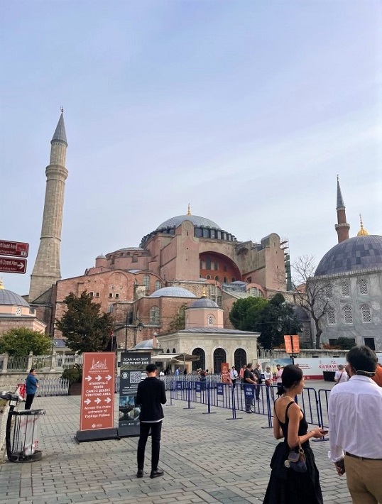 オフィスが位置するイスタンブールは、ボスポラス海峡を挟んでアジアとヨーロッパの両方にまたがる文化の交差点です。トルコ最大の都市であるイスタンブールは、かつてのコンスタンティノープルとして知られ、ローマ帝国、ビザンツ帝国、オスマン帝国の三大帝国の首都として常に歴史の中心に位置してきました。市内には、ビザンツ帝国時代の壮麗な建築物やオスマン帝国の荘厳なモスクが数多く存在します。特にアヤソフィアは、キリスト教正教会として建設され、ビザンツ帝国時代には重要な宗教的中心地となり、オスマン帝国の時代にはスルタン(絶対的な権力者)が金曜日の礼拝に訪れるなど、時代ごとに様々な形で変容してきました。