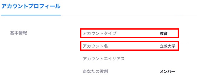 アカウントプロフィールが、アカウントタイプ「教育」、アカウント名「立教大学」になっていることを確認してください。